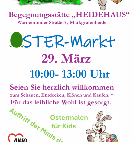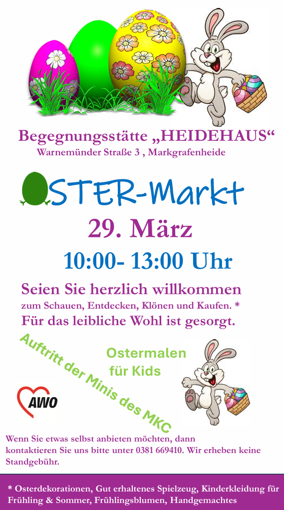 Die Begegnungsstätte âHEIDEHAUSâ in Markgrafenheide lädt herzlich zum diesjährigen Ostermarkt ein!
