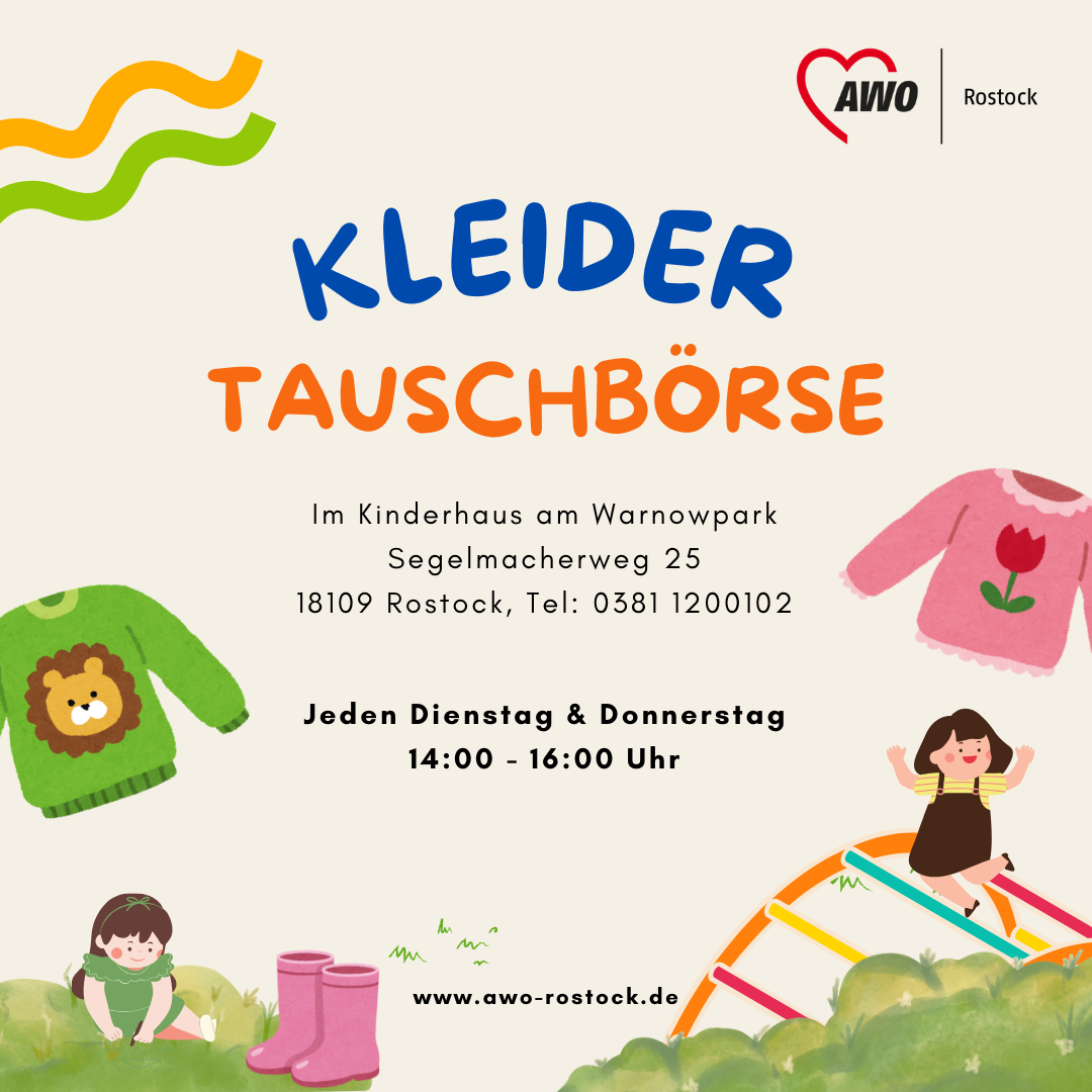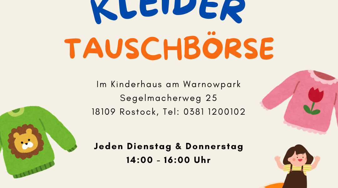 Kommt vorbei zu unserer Kleidertauschbörse und bringt gut erhaltene Kinderkleidung, Schuhe oder Spielsachen mit.