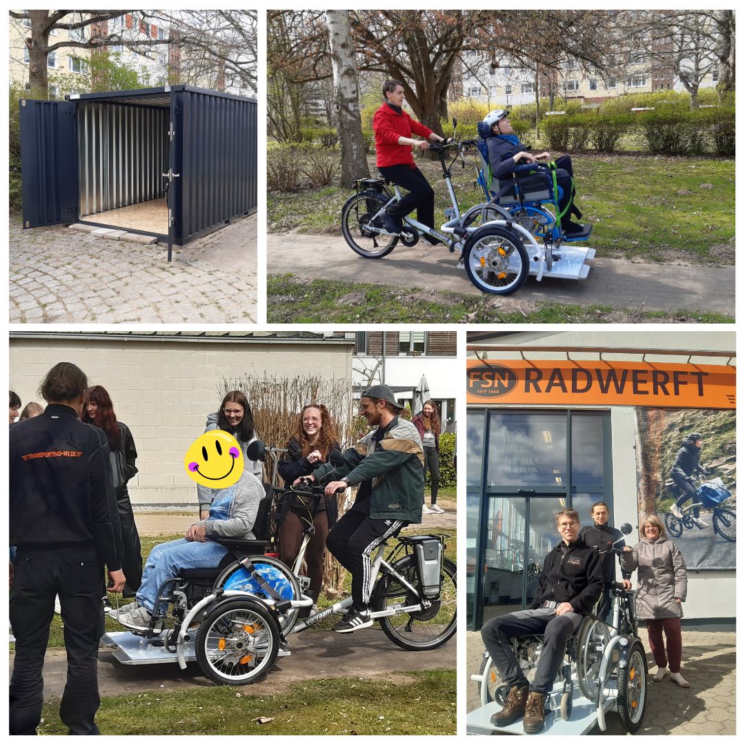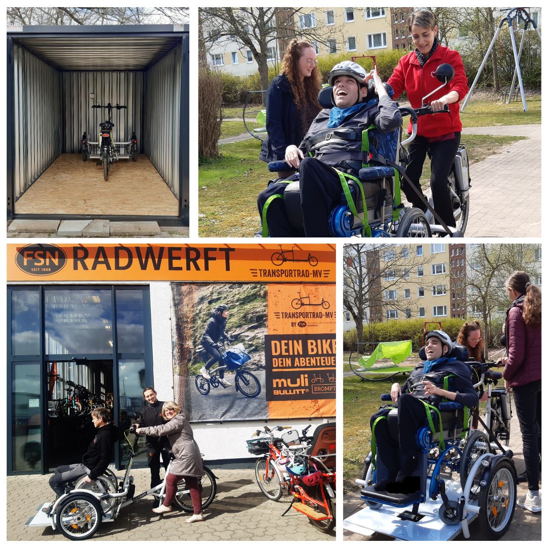 Große Freude in der Schwerbehinderteneinrichtung „Alternative Wohnoase“ in Lütten Klein: Dank der Förderung durch die Aktion Mensch konnte die Einrichtung ein modernes Rollstuhltransportfahrrad anschaffen. Ergänzt wurde diese Anschaffung durch eine passende Fahrradgarage, die das Spezialrad zuverlässig vor Witterung und Diebstahl schützt.