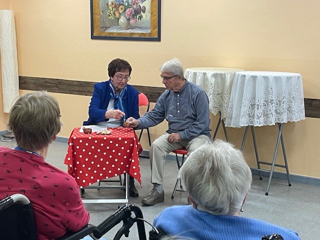 Am Dienstagnachmittag, 04.11.2025, war es wieder so weit: DE PLATT KOMEDI sorgte mit viel Mecklenburger Charme für Unterhaltung auf Plattdeutsch. Skurriles aus dem Eheleben von Helga und Hermann wurde unter die Lupe genommen und so fand sich jeder Bewohner in der Geschichte wieder. Ein Arztbesuch, der eigentlich kein Arztbesuch war, und der Kaffeeklatsch unter Freundinnen sorgten für einige Lachanfälle.