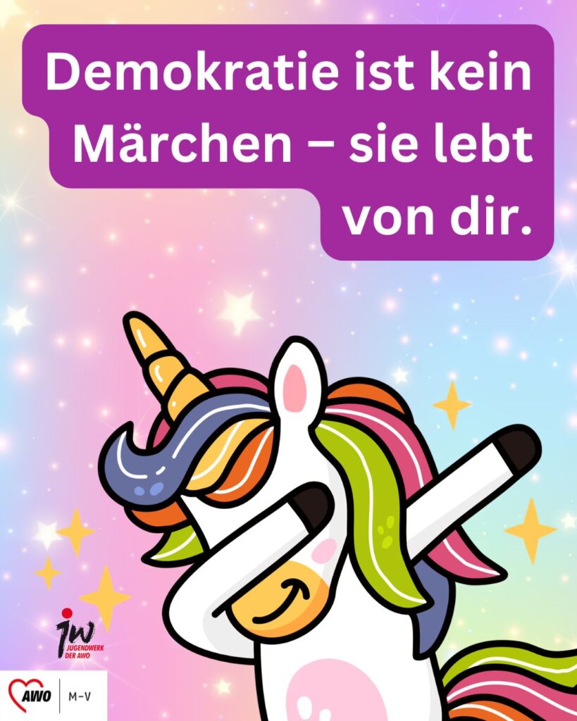 Unter dem Motto „Demokratie ist kein Märchen – sie lebt von Dir“ wird deutlich: Demokratie funktioniert nicht von allein. Sie braucht Beteiligung, Engagement und Verantwortung. Jede Stimme zählt und trägt dazu bei, dass Meinungen sichtbar werden und Entscheidungen auf einer breiten Grundlage getroffen werden. Nicht zu wählen bedeutet, diese Möglichkeit ungenutzt zu lassen.