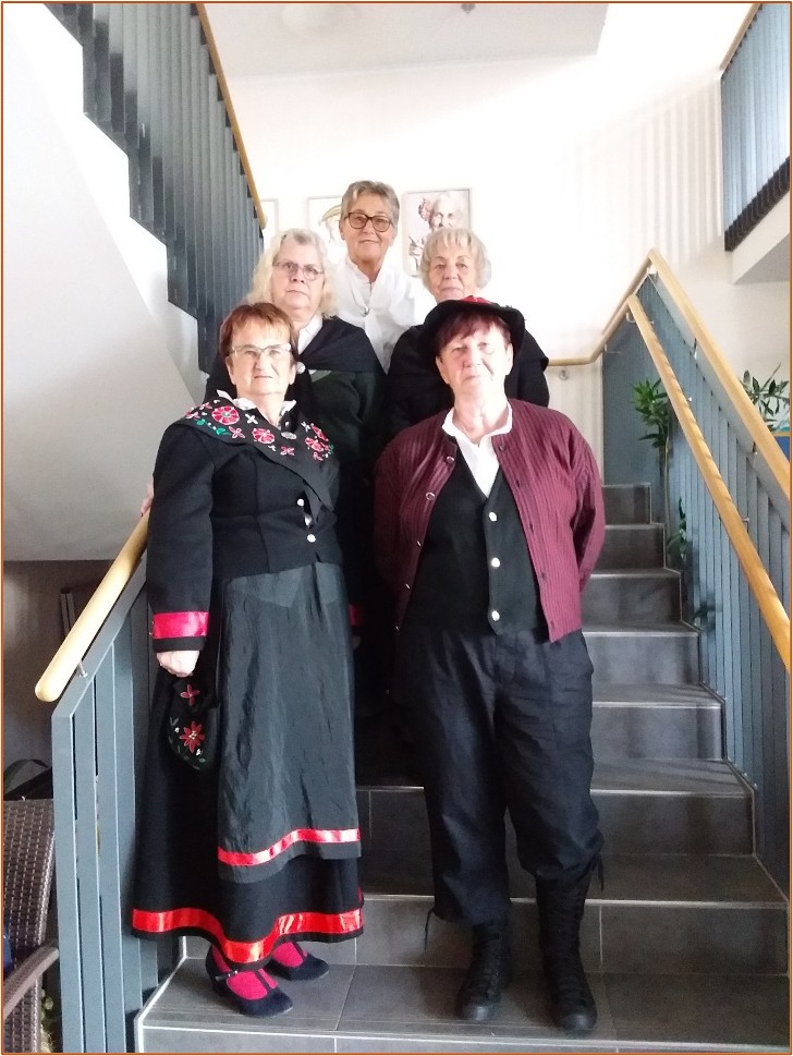 Besonders freuten wir uns über den Besuch der Satower Landfrauen, die in ihren beeindruckenden Trachten erschienen und unser Fest bereicherten. Mit viel Herzlichkeit stellten sie uns die kunstvoll gebundene Erntekrone vor. Diese prachtvolle Krone, gebunden aus verschiedenen Getreidesorten, schmückt nun den Eingangsbereich unseres Hauses und symbolisiert den Dank für die reiche Ernte.