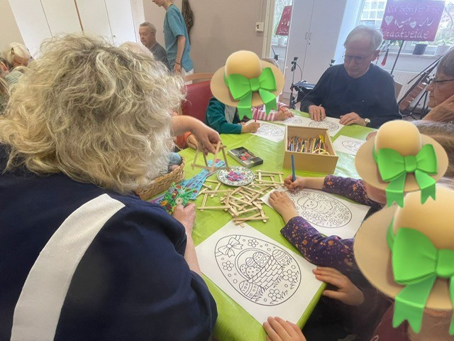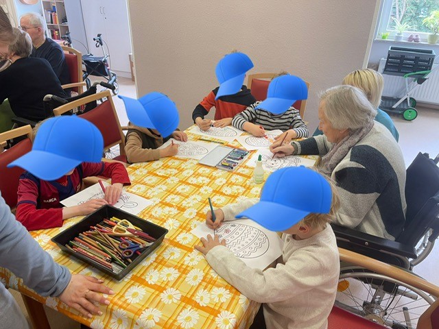 Mit viel Freude und Engagement wurden Ostereier ausgemalt und frühlingshafte Fensterdekorationen gebastelt. Die Kinder brachten frischen Schwung und fröhliches Lachen mit, während die Seniorinnen und Senioren ihre Erfahrungen und liebevolle Geduld einbrachten.