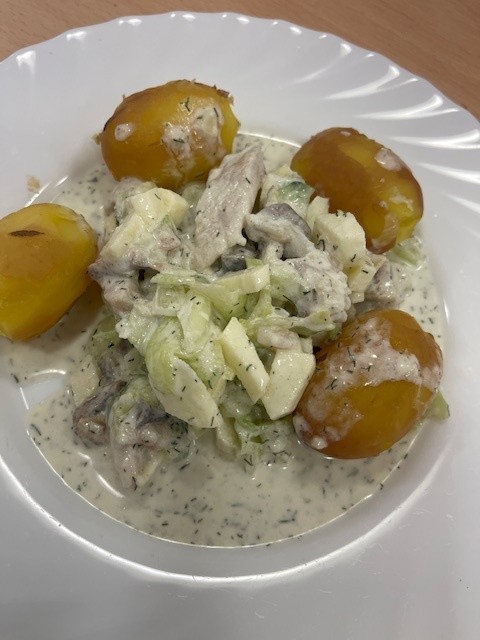 Gemeinsam wurde ein traditionelles Gericht geplant: frische Pellkartoffeln mit Matjes in Dill-Sahnesoße, verfeinert mit Äpfeln, Gurken und Zwiebeln. Bereits die Planung weckte viele Erinnerungen an frühere Zeiten und sorgte für angeregte Gespräche.