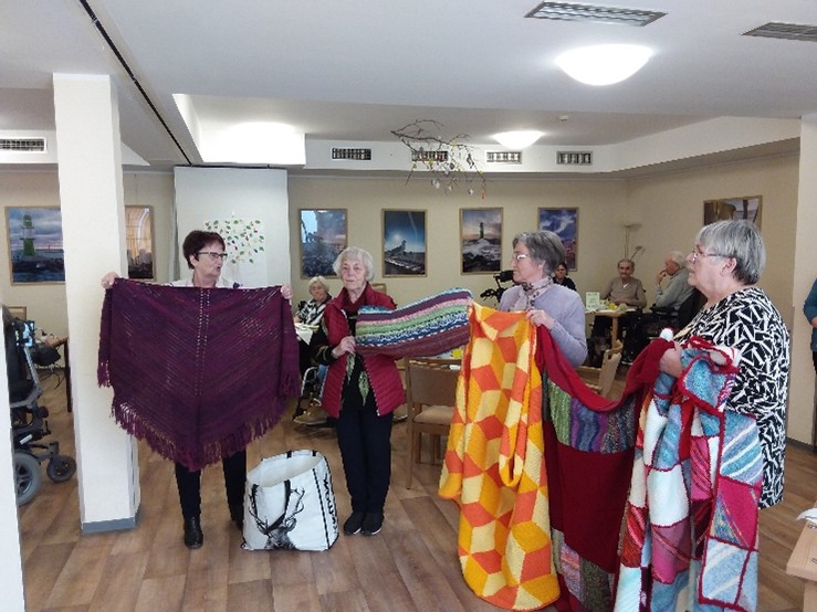 Im Rahmen ihres Projektes „Mit Nadel und Faden gegen das Schweigen – Landfrauen schenken Wärme“ überreichten sie uns mehrere handgefertigte Kuscheldecken, ein Kissen und ein Schultertuch. Jedes einzelne Stück ist in aufwendiger Handarbeit entstanden. Diese wunderbaren Geschenke sind nicht nur praktisch und wärmend, sondern auch ein Zeichen der Verbundenheit. Solche Gesten schenken nicht nur Wärme im wörtlichen Sinne, sondern auch Freude.