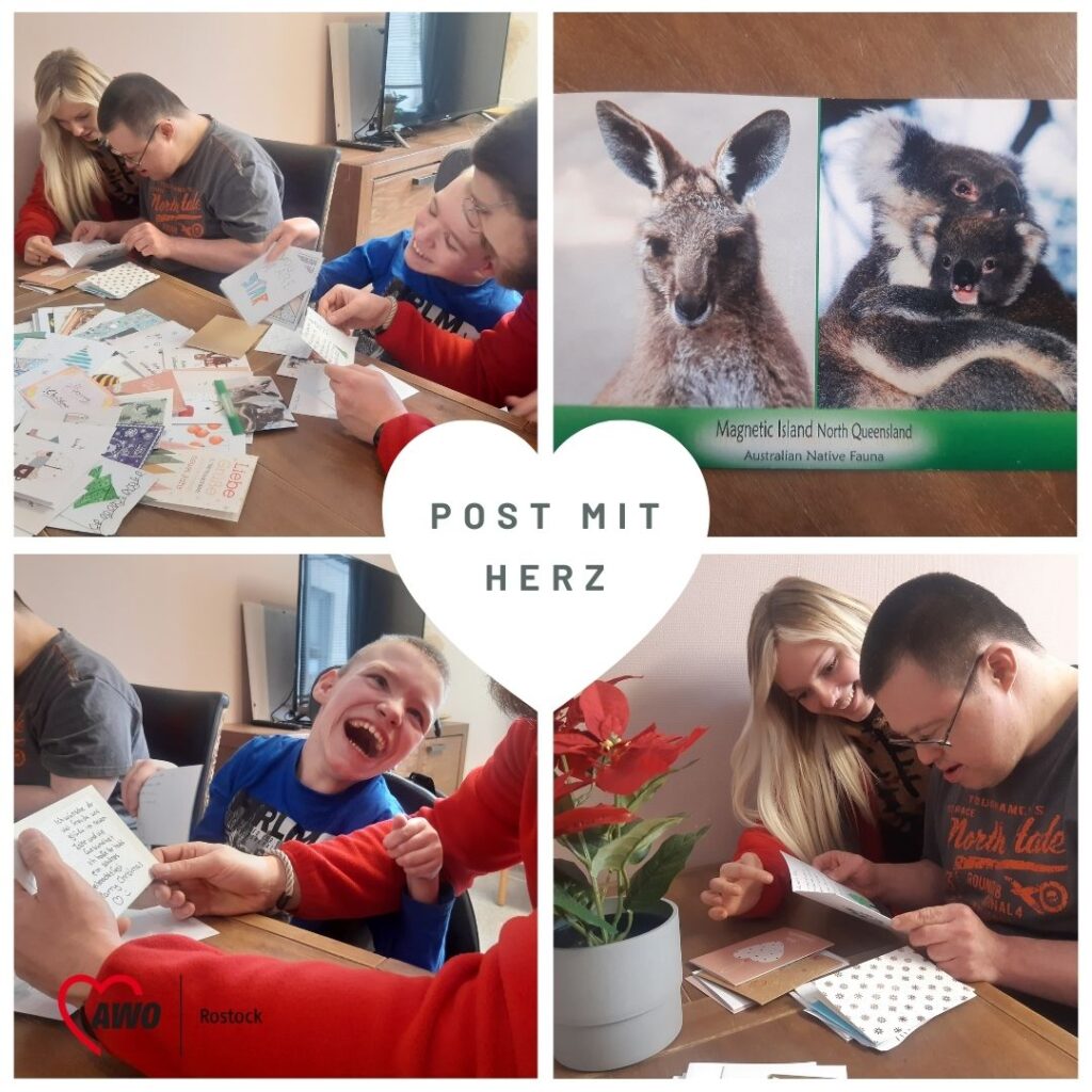 In der Adventszeit durften wir in der Alternativen Wohnoase Rostock eine besonders schöne Überraschung erfahren. Im Zuge der Aktion „Post mit Herz“ erreichten uns viele liebevoll gestaltete Weihnachtskarten, die unseren Alltag auf wunderbare Weise bereichert haben. Unsere 46 Bewohnerinnen waren tief berührt von den persönlichen Botschaften, den herzlichen Worten und den guten Wünschen. Jede Karte wurde aufmerksam gelesen und sorgte für viele glückliche und lächelnde Gesichter.