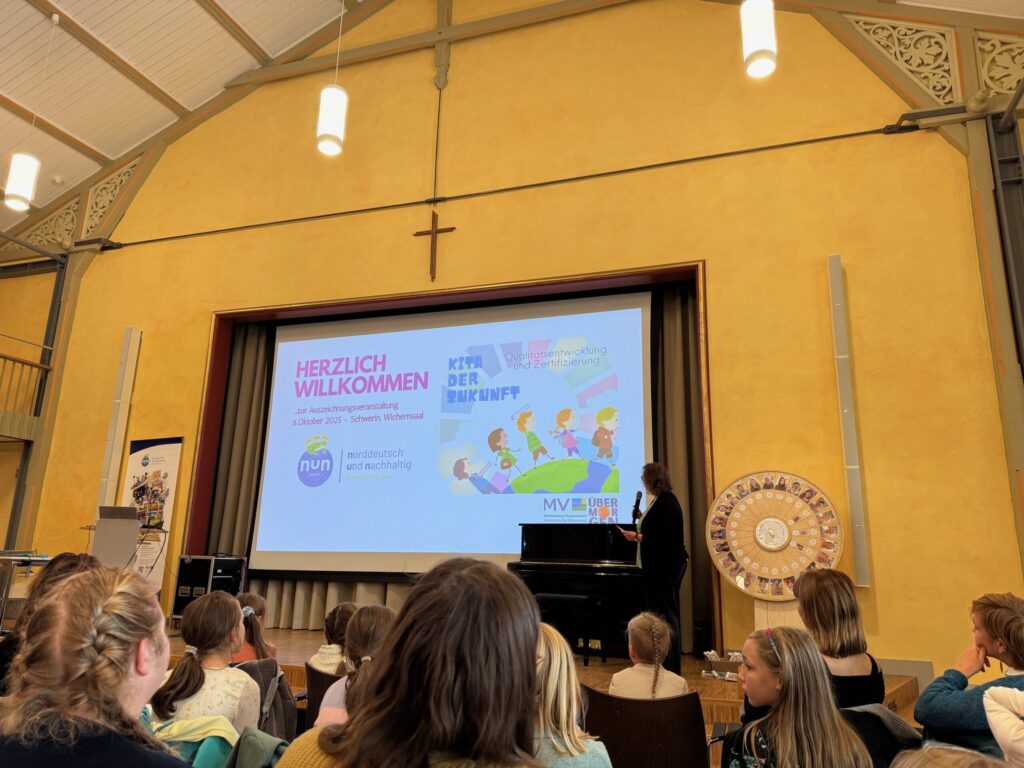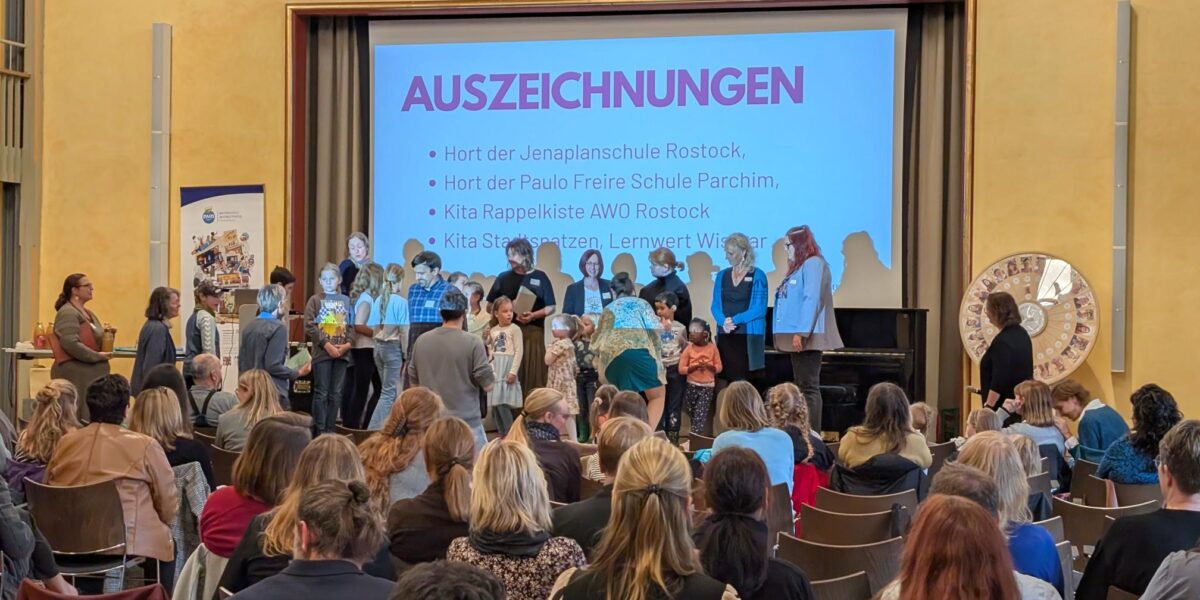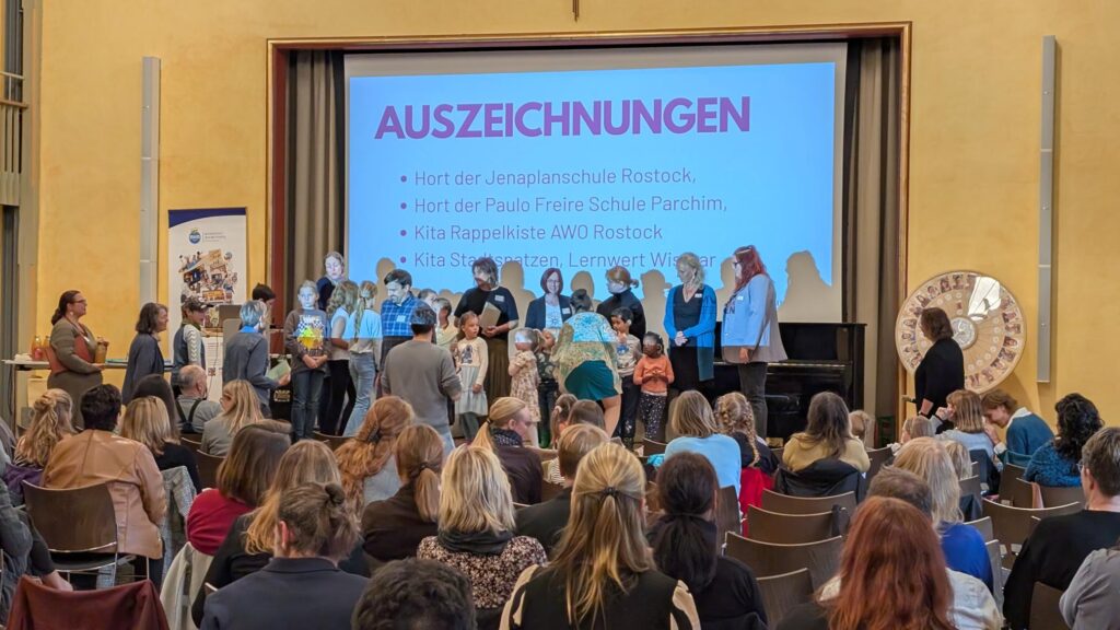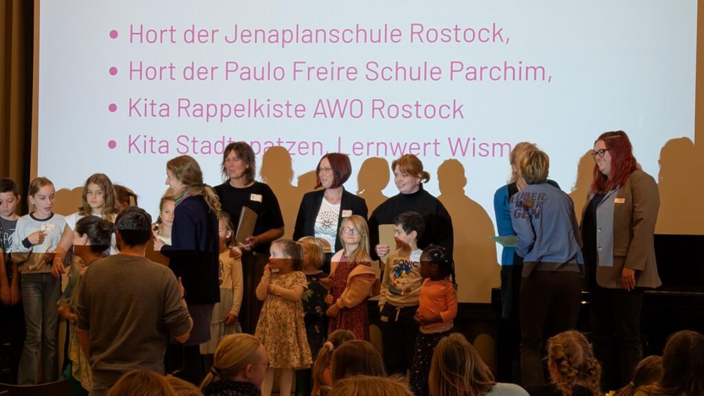 Am vergangenen Montag haben wir gemeinsam mit einigen Kindern aus unserem neuen Kita-Chor den Weg nach Schwerin angetreten, um die Auszeichnung feierlich entgegenzunehmen. Es war ein besonderer Moment, der das Engagement unseres Teams und unserer kleinen Entdecker:innen für nachhaltige Bildung würdigt.