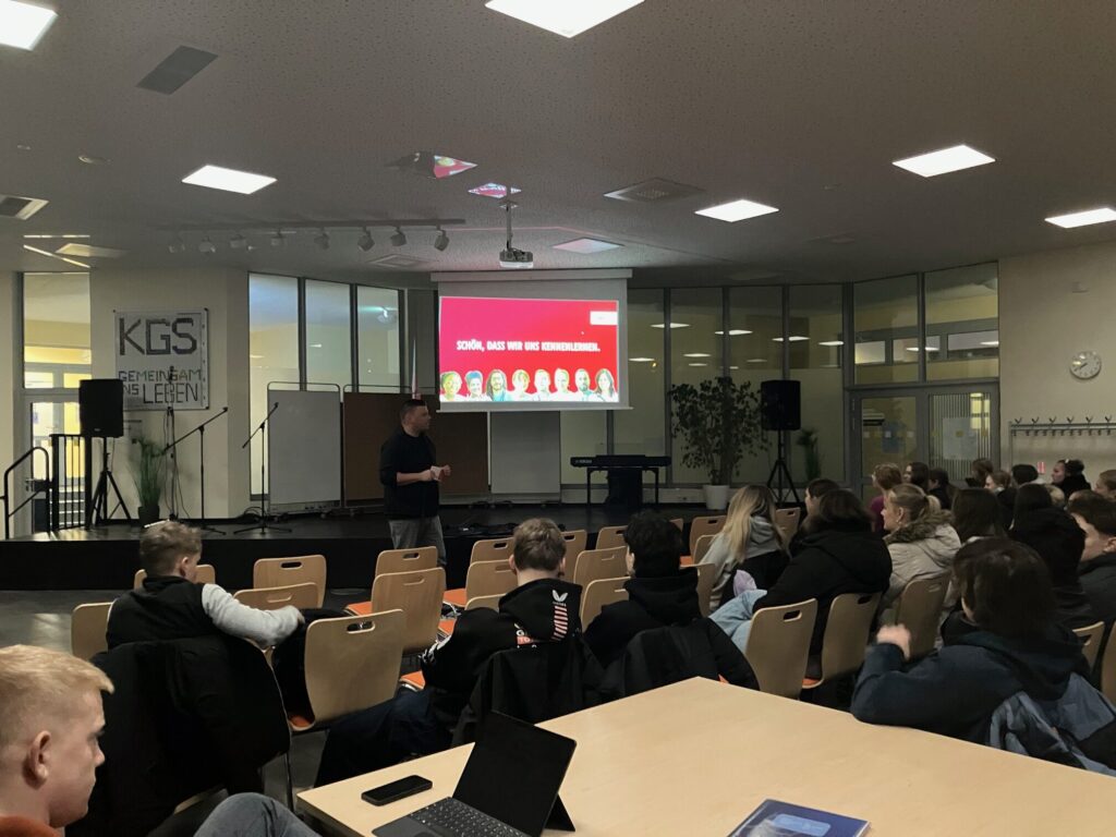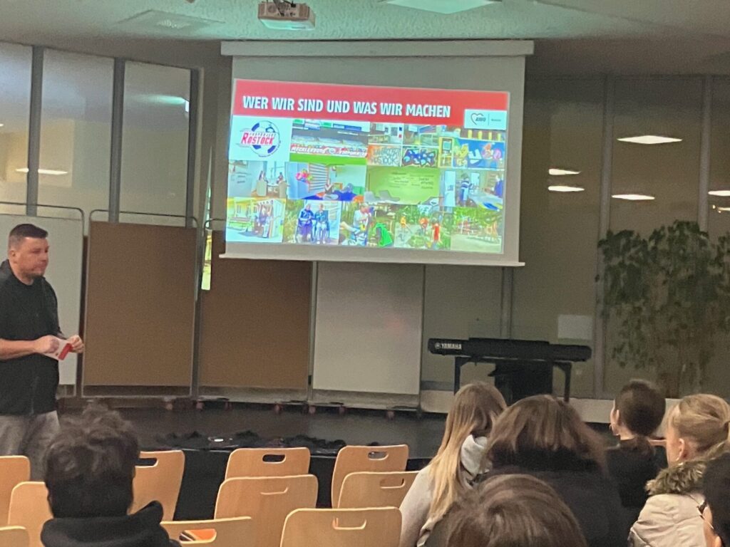 Heute waren wir wieder an einer Schule in Rostock unterwegs und haben gezeigt, was bei der AWO Rostock alles geht. In der Aula der Kooperativen Gesamtschule Rostock haben sich über 30 Schüler/-innen informiert, Fragen zu unseren Ausbildungen gestellt und spannende Einblicke in verschiedene Berufswege bekommen – inklusive unseres dualen Studiums.